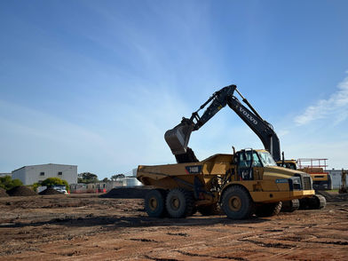 • Place, compact and final trim of pavement rubble across the site to design RLs for the building pad (~16000m2), car park (~2000m2), and heavy-duty pavement (~13000m2).